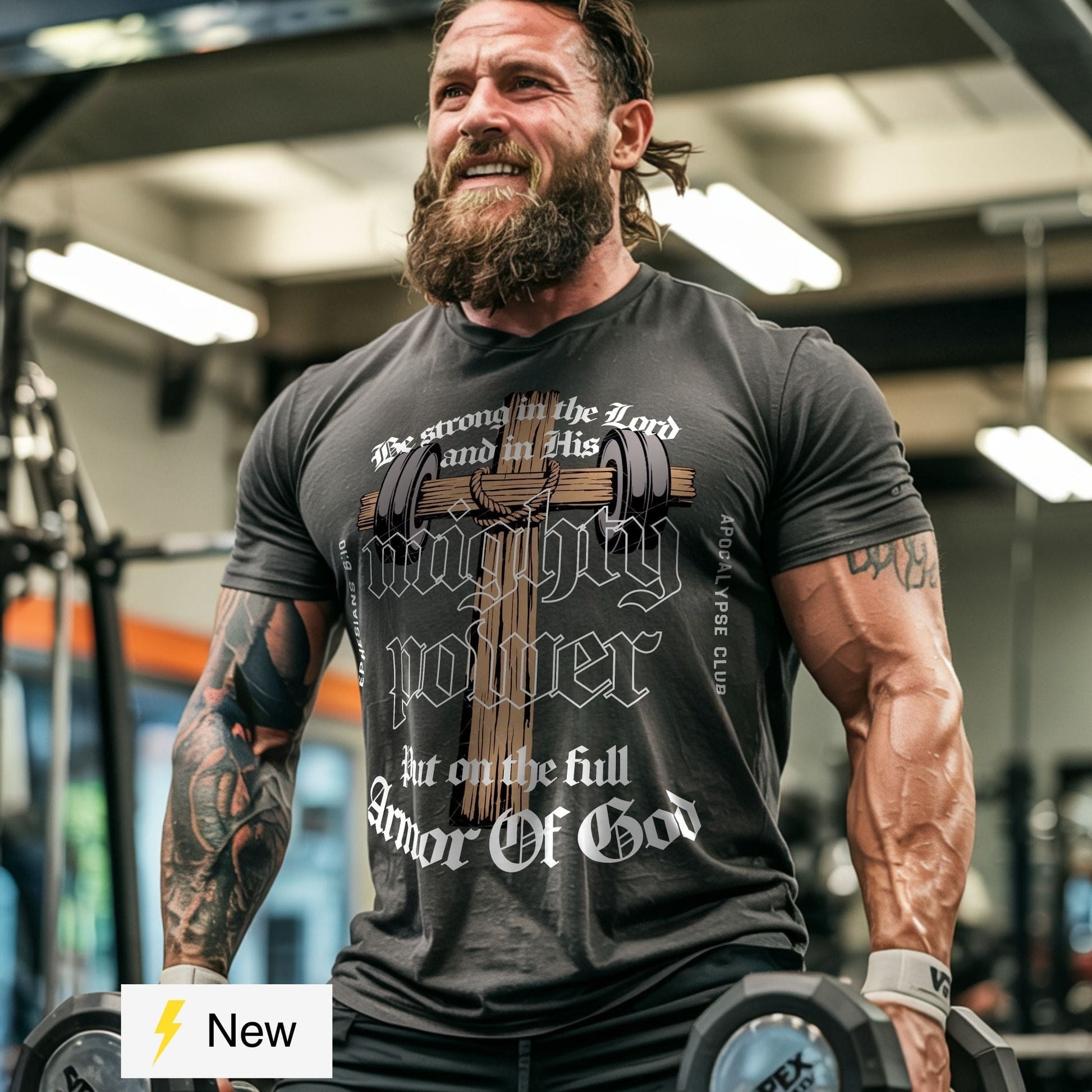 Meet your new go-to weightlifting shirt: Introducing the unisex His Mighty Power T-Shirt.